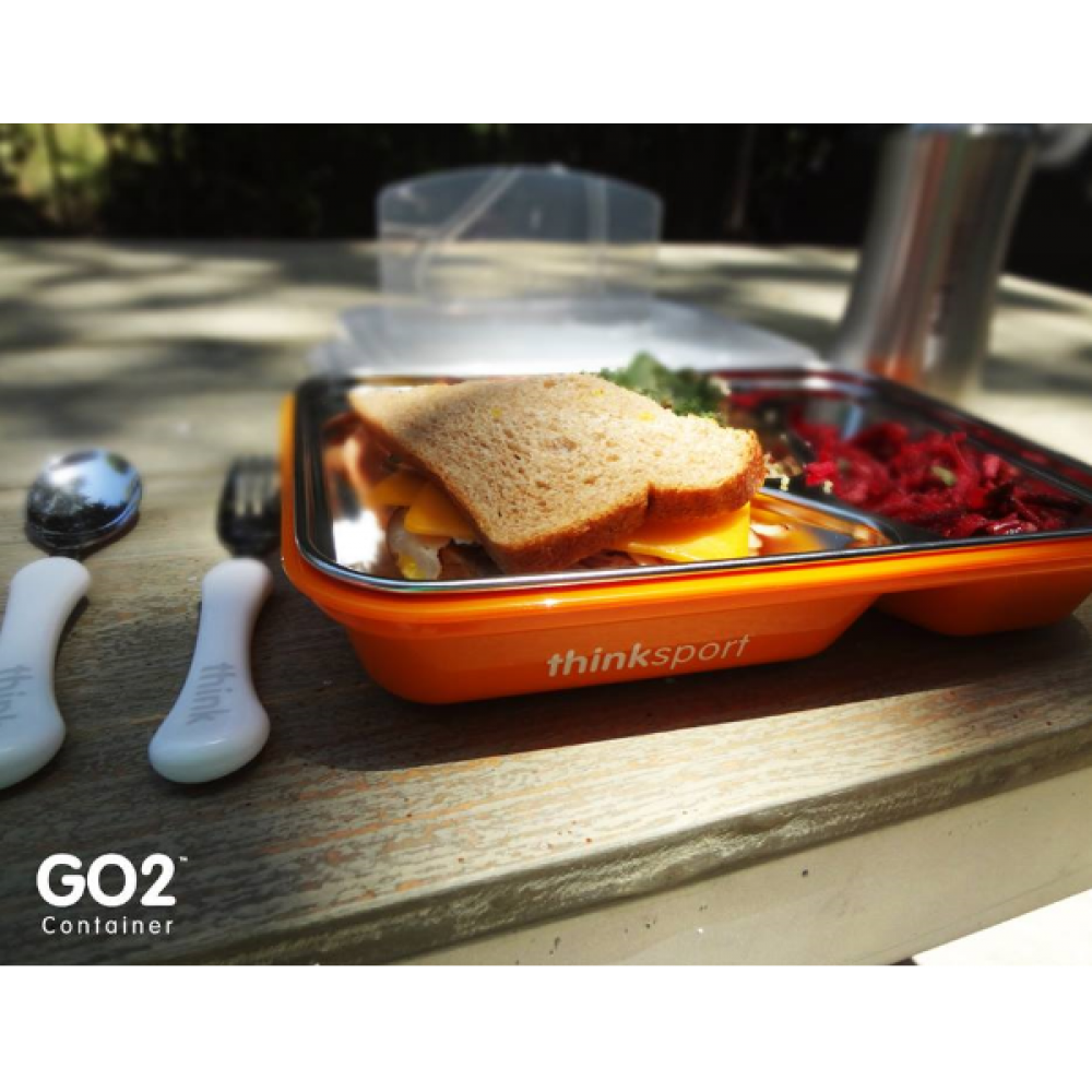 - GO2 Container comes in Blue, Orange, White and Pink! Fork and spoon secured. No losing utensils.